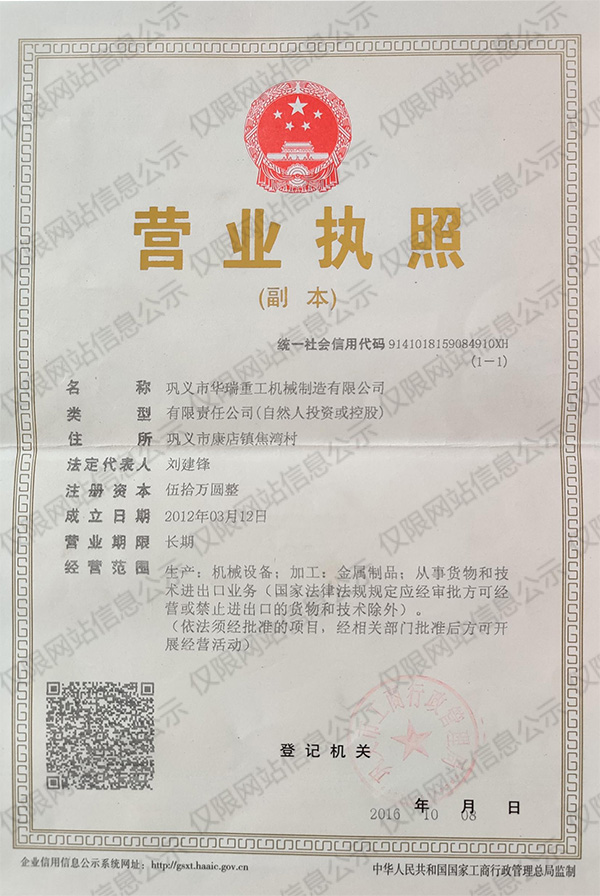 - 鞏義市華瑞重工機械制造有限公司 版權所有 2010 豫ICP備19018984號-2
